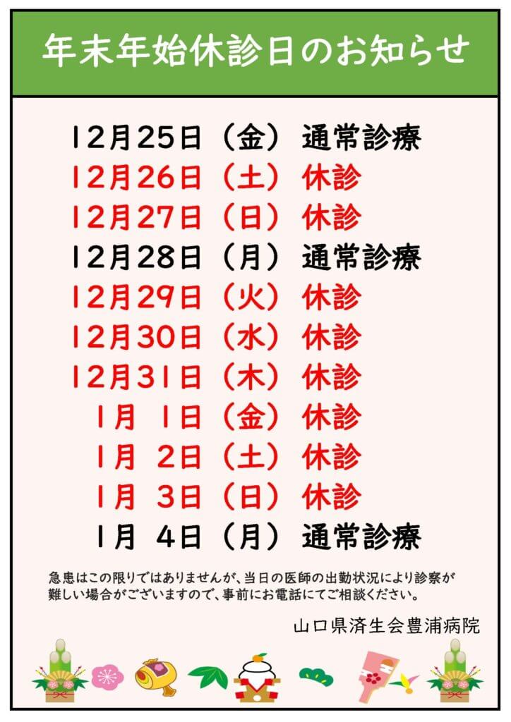 年末年始休診のお知らせ